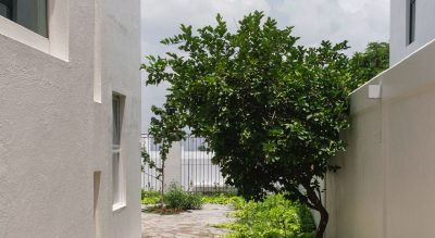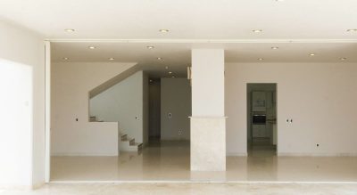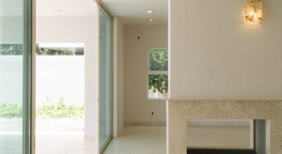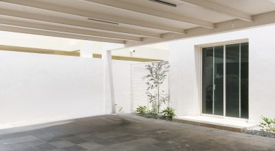 Terraza techada u jardín. Todas ventanas se ocultan dentro del muro dando una amplitud extra que se nota.