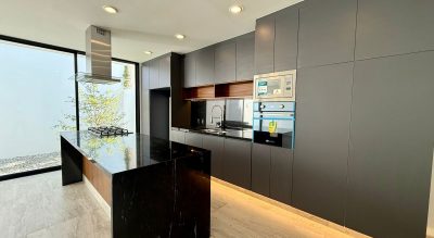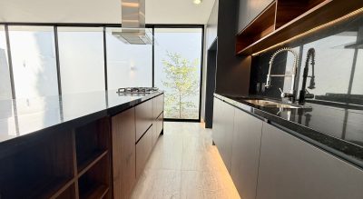 Con los mejores terminados, piso de gran formato, carpintería de parota en toda la casa, cocina equipada con estufa, campana, horno y microondas, preparación para paneles y calentador solar, salidas para aires acondicionados y cámaras de seguridad/bocinas, así como cisterna de 5 mil litros.